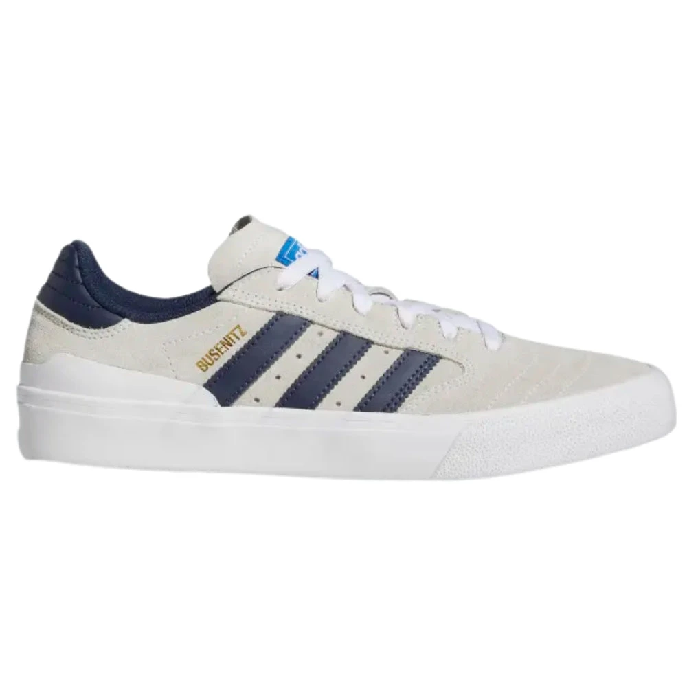 De Adidas Busenitz Vulc II Cloud White/ Collegiate Navy/ Blue Bird is de vernieuwde versie van de Dennis Busenitz’ karakteristieke schoen. De beste is nu nóg beter. Dit herontwerp van het beroemde model van de legendarische skater Dennis Busenitz vernieuwt het origineel met nog meer demping en slijtagebestendigheid. Als je plotseling vol in de ankers moet, dan geeft een slijtvaste neus je een steuntje in de rug. De gevoerde Geofit-boord biedt een anatomische pasvorm en optimaal comfort. Adiprene onder de hiel zorgt voor superieure demping bij het neerkomen.Â
