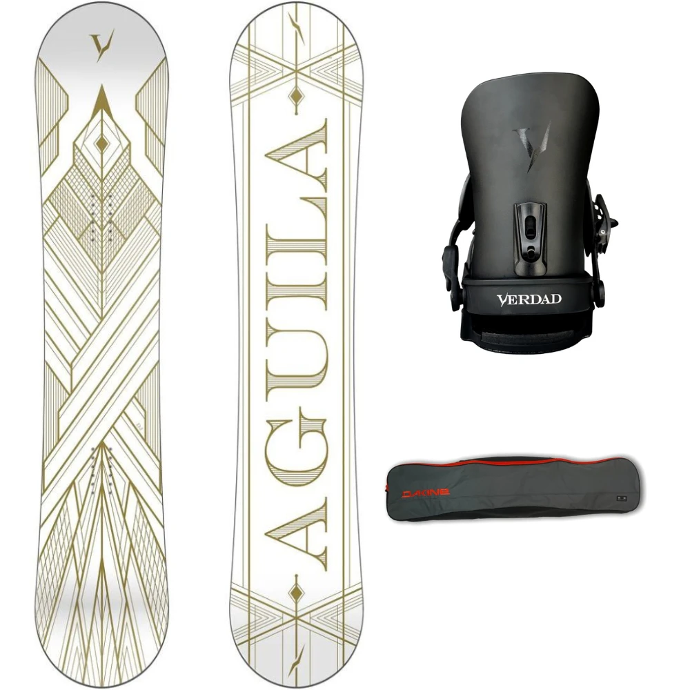 Ontdek de ultieme tweedehands snowboardset: Verdad Aguila White 155 Snowboard, V Pro Snowboardbindingen en de Dakine Pipe Snowboardbag Steel Grey 157. Deze set is samengesteld uit topkwaliteit producten die perfect op elkaar zijn afgestemd. Iedere snowboardset werd goed onderhouden en is gewaxt en geslepen voor levering.