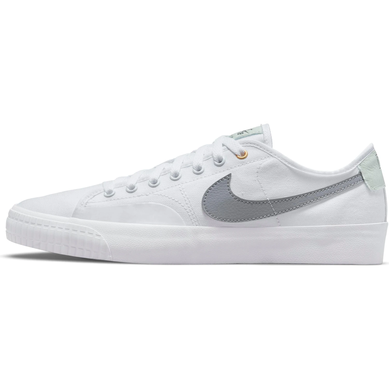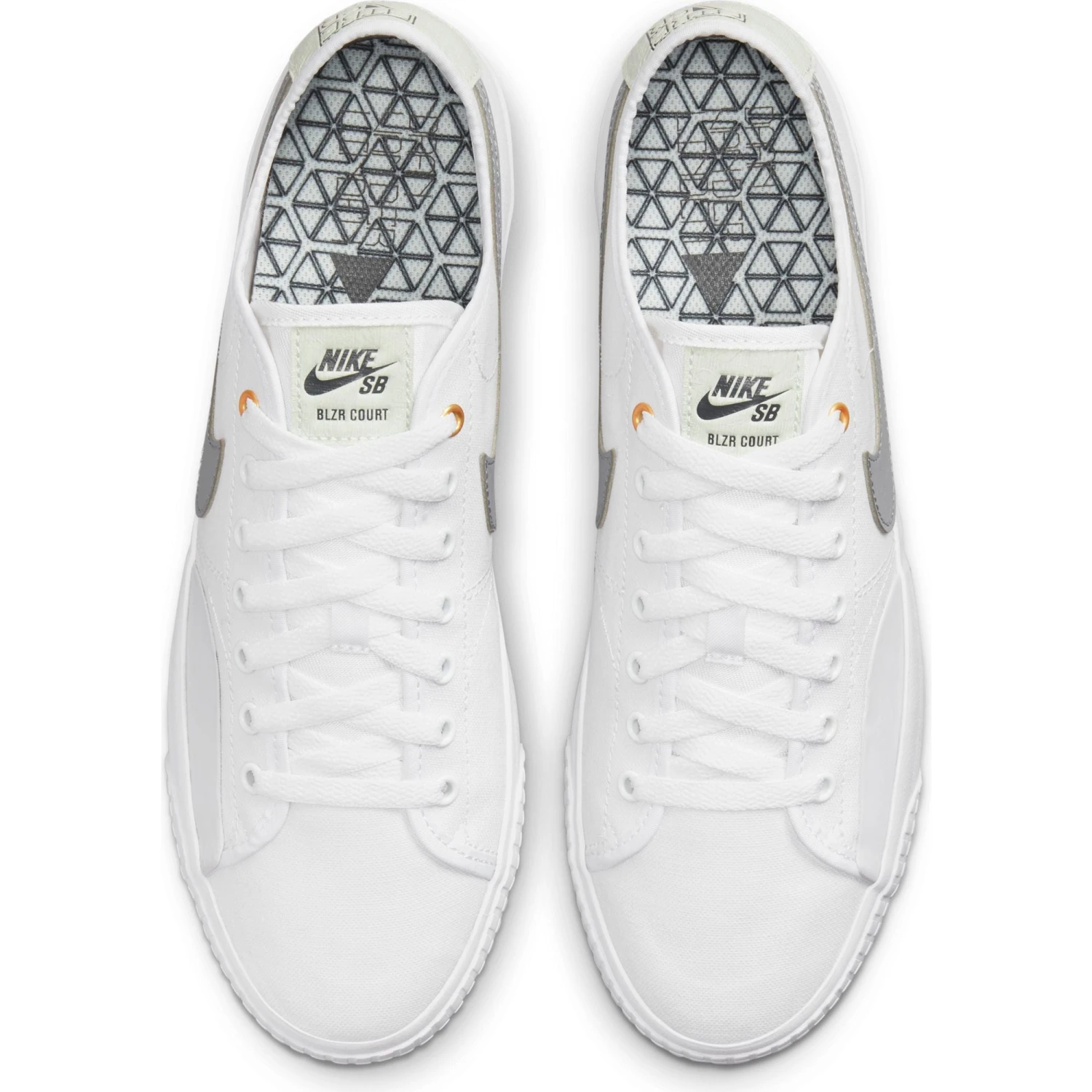 De Nike SB Blazer Court DVDL White/ Wolf Grey is ontworpen in samenwerking met Nike SB skateboarder Daan van der Linden. Het design is gemaakt met canvas voor een authentieke skatelook. De nieuwe graphics zijn geïnspireerd op de ruimte, waarvan de meeste inspiratie van Evoluon komt, een voormalig wetenschapsmuseum in Daan van der Lindens geboorteplaats, Eindhoven.