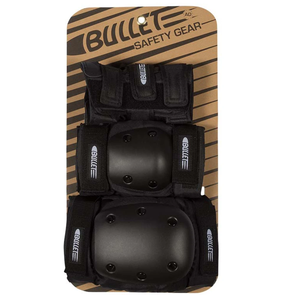 De Bullet Protection set Black beschermt beginnende skaters door middel van deze elleboog-, knie- en polsbeschermers in 1 set.