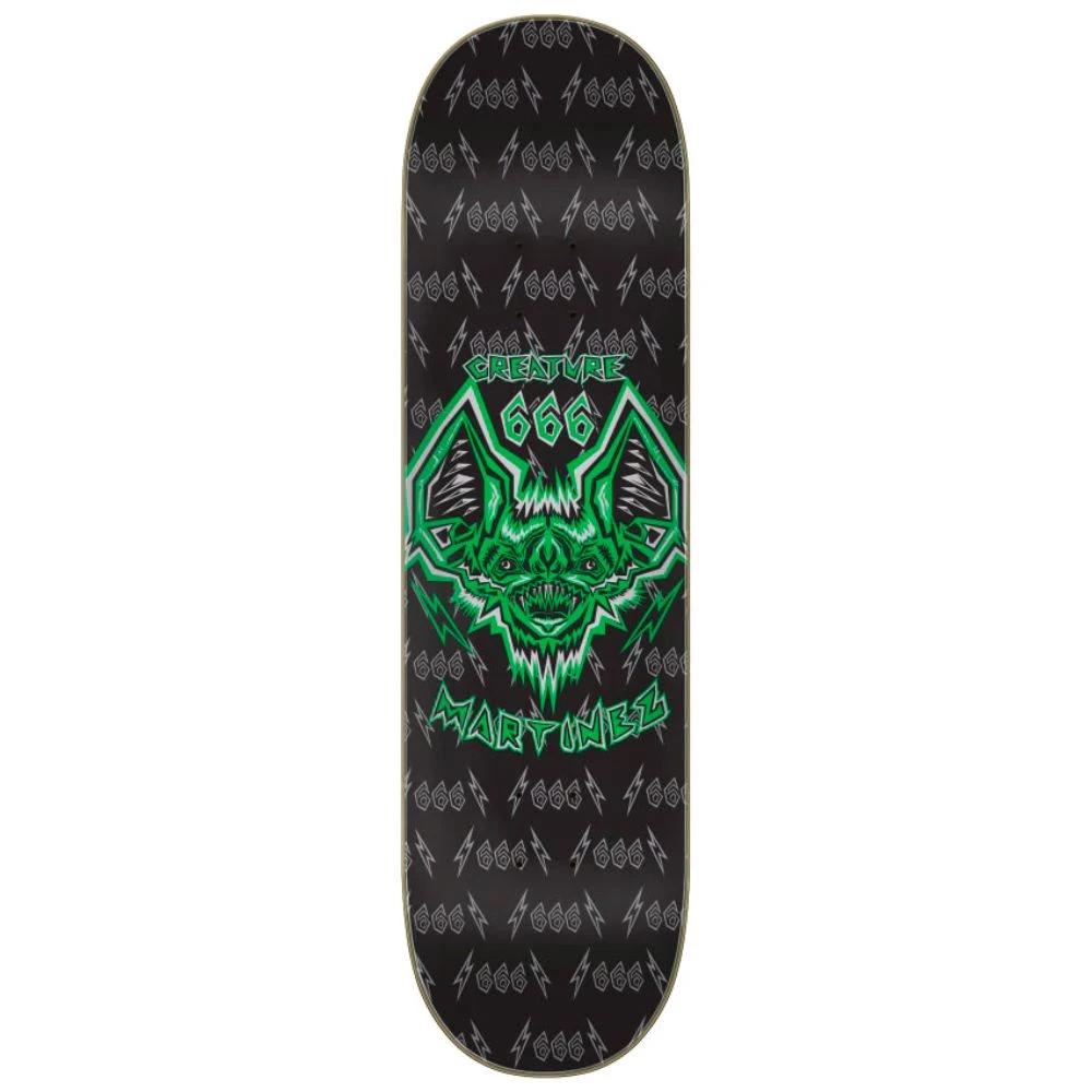 Het Creature Martinez GRBG Bat 8.6″ Skateboard Deck is een nieuw Creature deck met origineel artwork. Dit deck bestaat uit 7 lagen esdoornhout en is individueel geperst met epoxy lijm. Hierdoor krijg je een sterk, responsief deck met langdurige pop en consistente concave en kick.