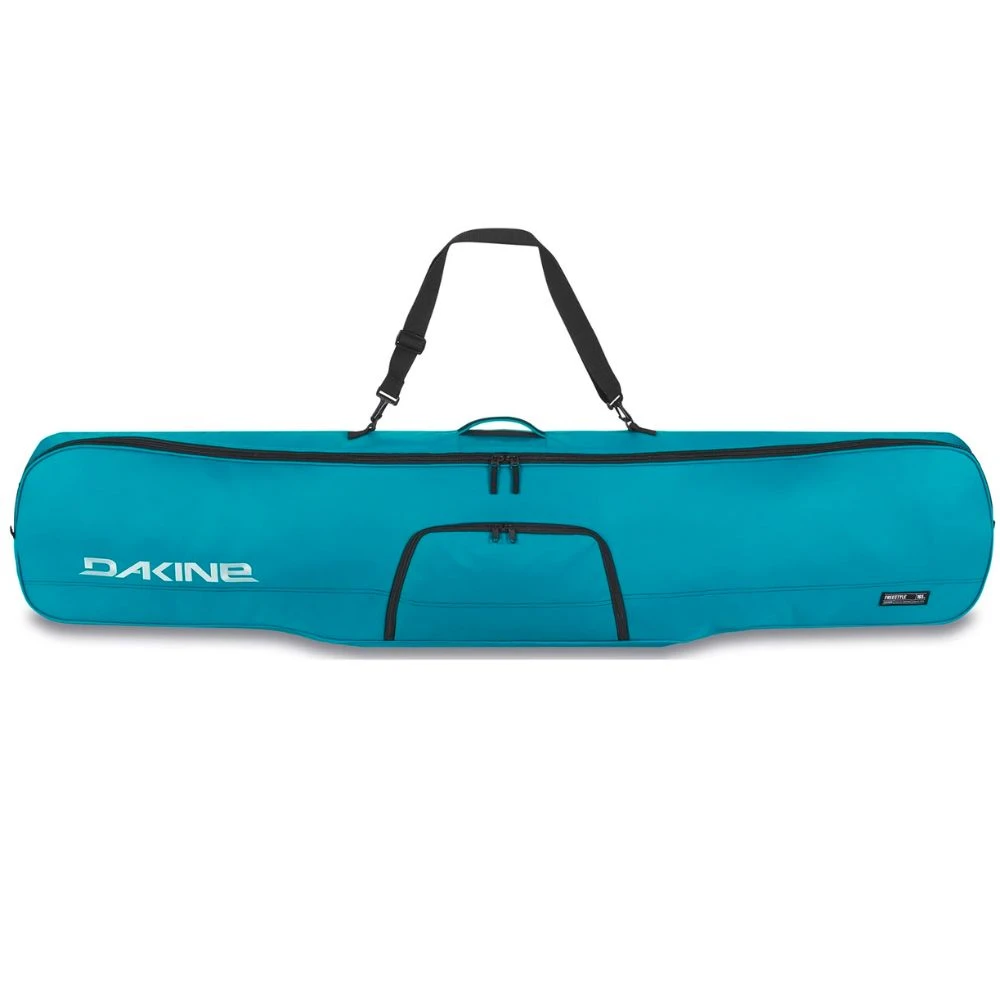 De Dakine Freestyle Snowboard Boardbag 157cm Deep Lake is een lichte snowboard bag van het Amerikaanse merk Dakine. Met de waterdichte voering en gepolsterde bodem zijn je spullen goed beschermd zijn tegen stoten en krassen. Er is ook een buitenvak voorzien voor je skibril, muts, handschoenen, …
