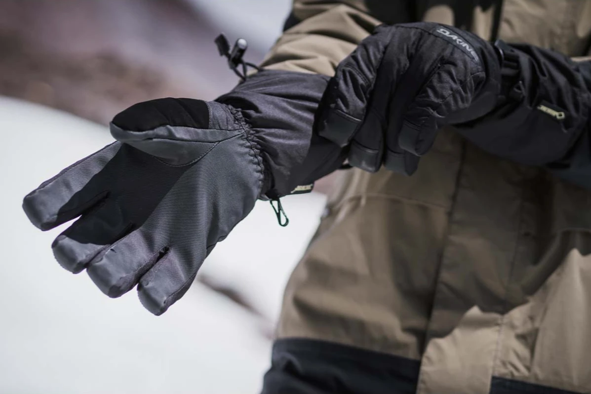 De Titan Glove Black van Dakine is een high-end handschoen met vele technische snufjes. Hij is ergonomisch gevormd en heeft een hoog draagcomfort. De binnenvoering is uit extra zacht tricot. In de Titan handschoen zijn GoreTex® membranen verwerkt, die beschermen tegen indringend vocht maar tegelijk ook ademend zijn. De Dakine Titan Glove kan met een klittenbandsluiting een beetje smaller worden gemaakt. De binnenhandschoen is uit elastisch materiaal en vormt zich zo naar de handvorm. Onder warmere omstandigheden kan deze handschoen ook goed als bijvoorbeeld pipe-handschoen worden gebruikt. Een highlight is het bovenmateriaal aan de duim-buitenzijden: ze hebben een kras- en wiszijde voor het schoonmaken van de bril. Op de handrug is een klein waterdicht RS-vak voor bijv. skipas of heat packs.