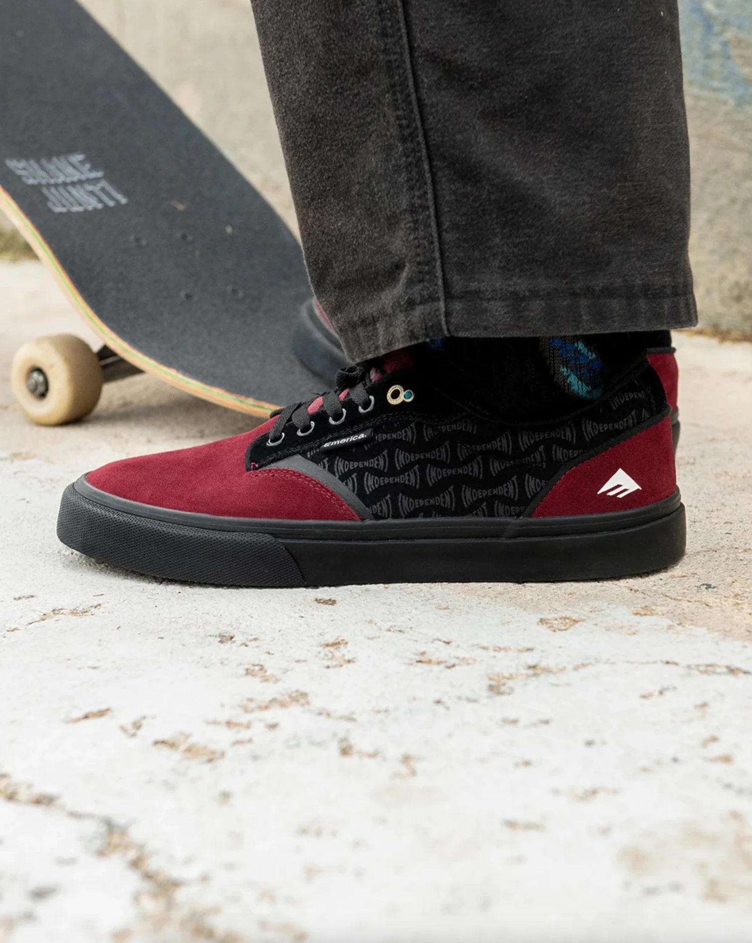 De Emerica Dickson X Independent Red/ Black is het pro model van Jon Dickson in collab met Emerica. De Dickson is een geweldige schoen om te skaten met enkele awesome features. Zo heeft deze een Flick Shield, een rubberen onderkant die langer meegaat en Desert Grip op de buitenzool voor een betere grip. Daarbij komt ook nog een G6 inzool die ervoor zorgt dat impact beter wordt opgevangen.