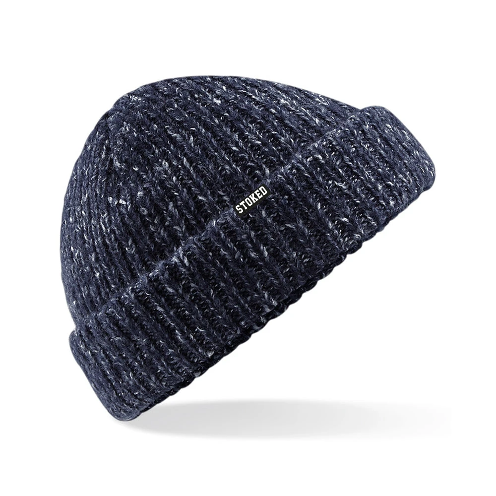 De Stoked Explorer Beanie Navy Fleck wordt gedragen door de guys en chicks die geen genoegen nemen met het uitgestippelde pad. Trek de bergen, de wildernis of de straten in met deze beanie als statement. De rauwe boarder spirit represent je dankzij deze zeer dikke, warme muts met een subtiele Stoked Script geweven patch. Een kleinere bovenkant in combo met het gespikkeld patroon geven hem een zeer rijke look & feel. Zeker één van de favo’s van onze Stoked pro riders.