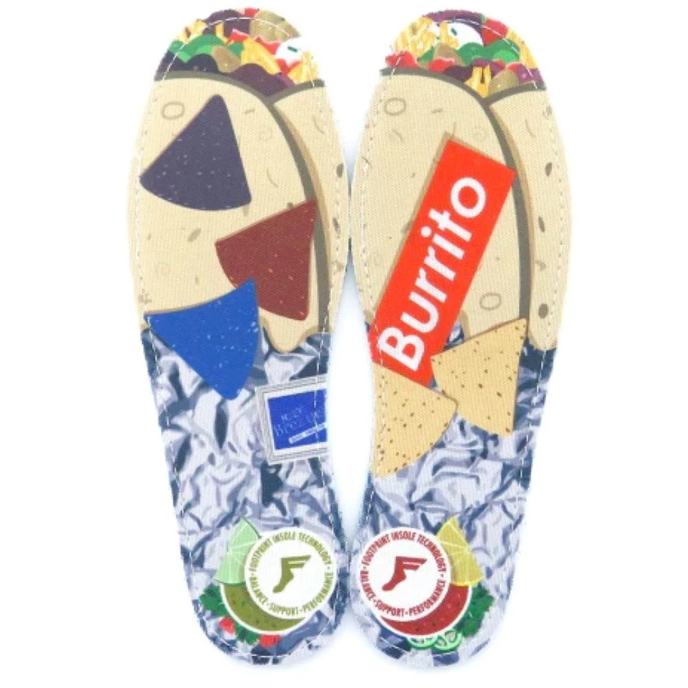 De Footprint Kingfoam Insoles Joey Brezinski Burrito zijn impact zolen van het revolutionaire merk Footprint in samenwerking met pro skater Joey Brizenski. Hun focus ligt volledig op de fysieke gezondheid van skaters. Als skater kom je vaak hoge gaps, stairs of rails tegen die een hevige impact hebben op je enkels, knieen en je hele lichaam. Daarom is het belangrijk om je hiervoor preventief te beschermen , zodat je kwetsuren kan vermijden. Footprint Insoles absorberen als het ware de impact van je landing alvorens het je lichaam bereikt. Ze hebben hiervoor verschillende formules.De Kingfoam soles zijn de meest absorberende en duurzame zolen in hun assortiment. Ze zorgen ervoor dat je tot 2x langer kan skaten doordat ze 90% van de impact energy opnemen. Hoe minder je voeten en benen deze impact moeten opnemen, hoe minder (snel) stijf ze zullen worden.