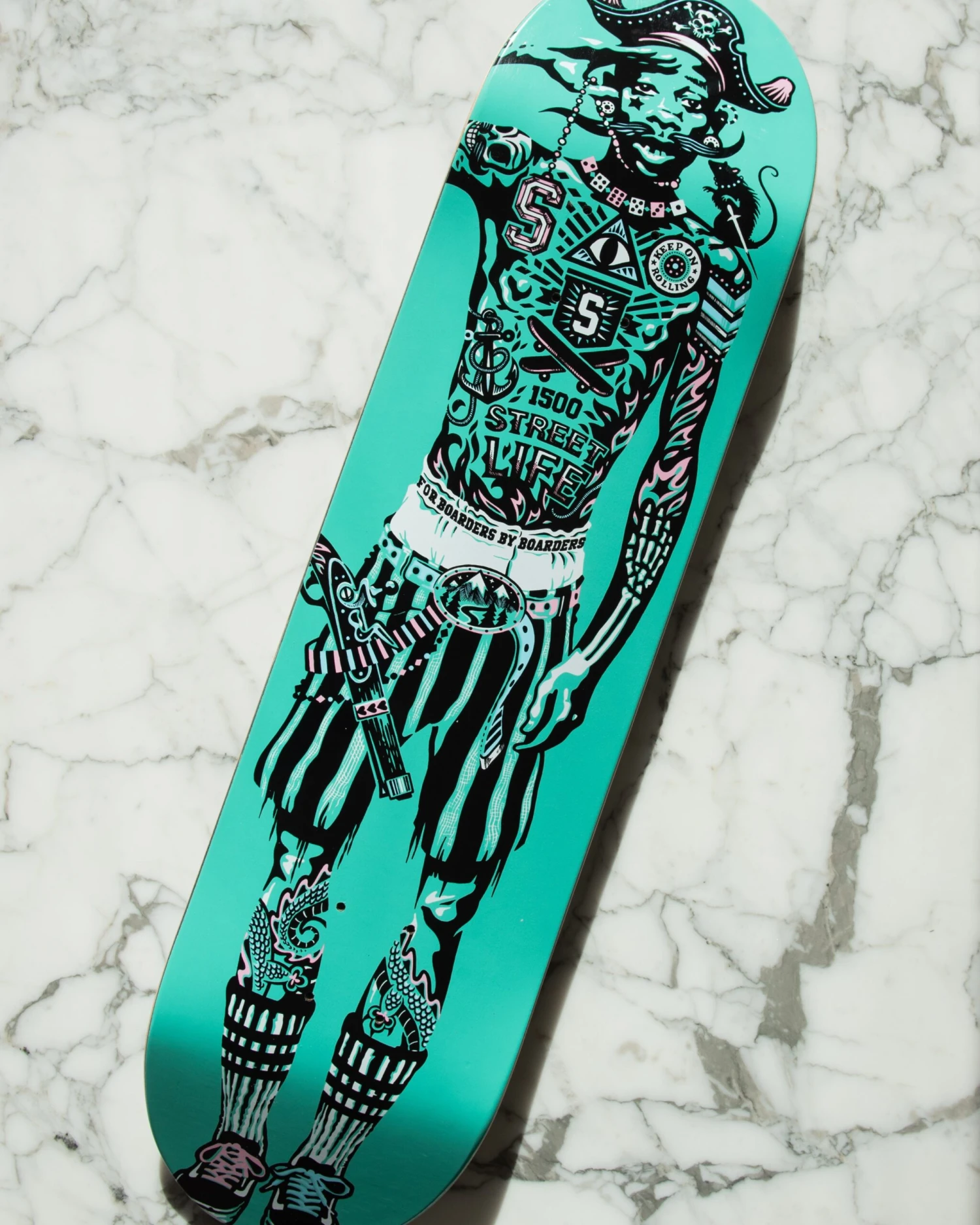 Met het Stoked Master Blaster skateboard Turquoise van Stoked Board Co zeg je: ” ay ay captain” & hijs je de zeilen maar beter, want we hebben de wind in de rug.