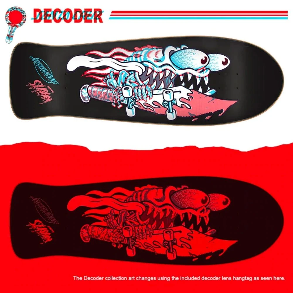 Het Santa Cruz Meek Slasher Decoder Black 10.1″ Skateboard Deck is een deck met transformatieve graphic op 7-ply Noord Amerikaans esdoornhout. individueel geperst met epoxy waardoor een sterk, responsief deck ontstaat met langdurige pop en consistente concave en kick. En nog een leuke extra: de print van het deck verandert wanneer je het bekijkt door de bijgeleverde decoder lens hangtag.
