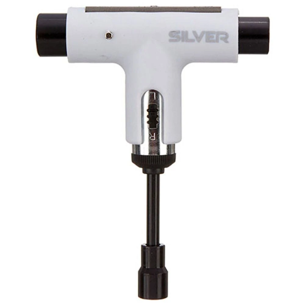 De Silver Premium Skateboard Tool Whiteout is de perfect tool voor complete skateboard assemblage met de minste moeite. Door de exclusieve hardware ratchet is het zeer gemakkelijk om vijzen aan te draaien. Er zit zelfs een precisie vijl bij om de randen van je griptape smooth te maken. Deze tool is beschikbaar in verschillende kleuren.