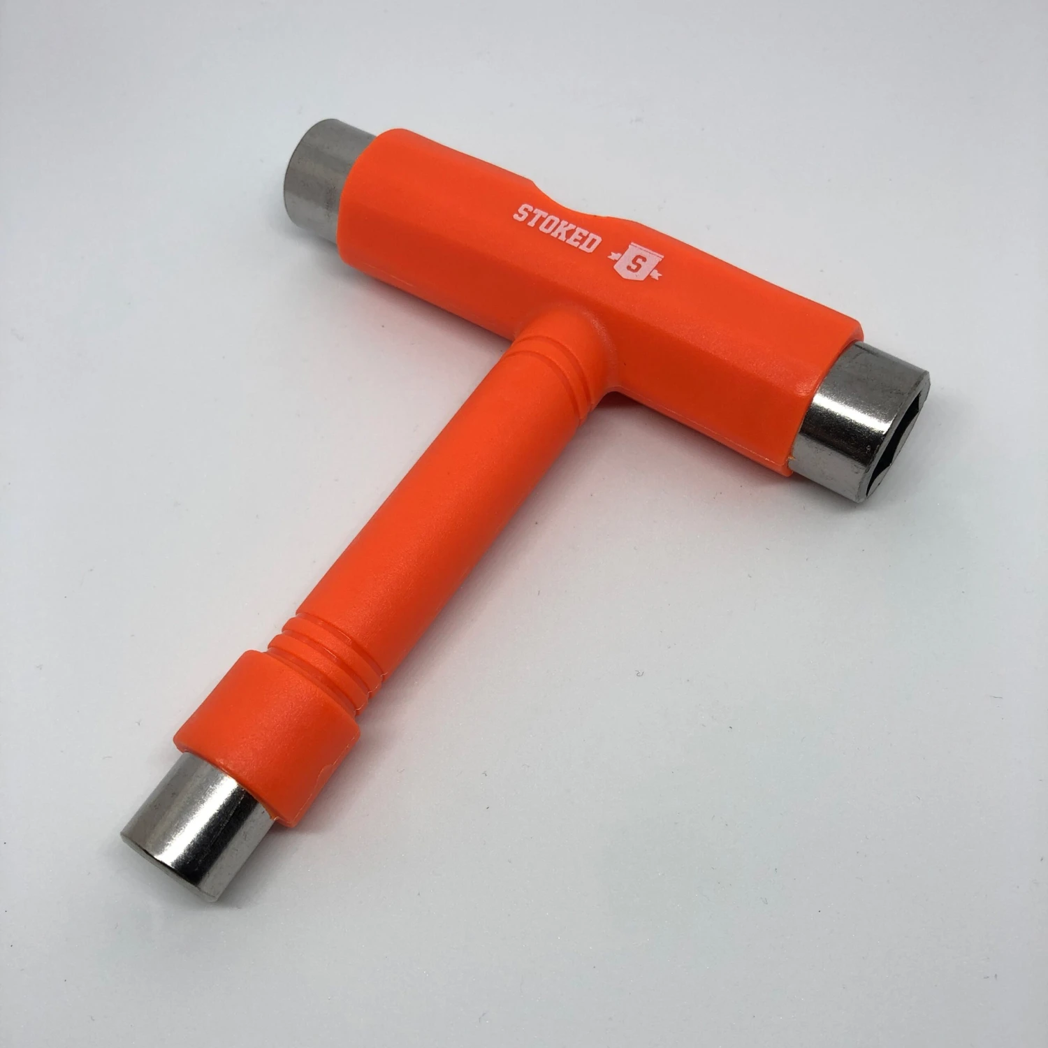 De Stoked Classic Skate Tool Orange werd ontwikkeld door het Europese Stoked Board Co. in samenspraak met de Stoked pro skaters. Deze zeer handige all-in one skatetool dient om je skateboardvijsjes , trucks of bouten mee aan te draaien. Als je veel skate weet je dat het altijd chill is om een goeie tool bij de hand te hebben.