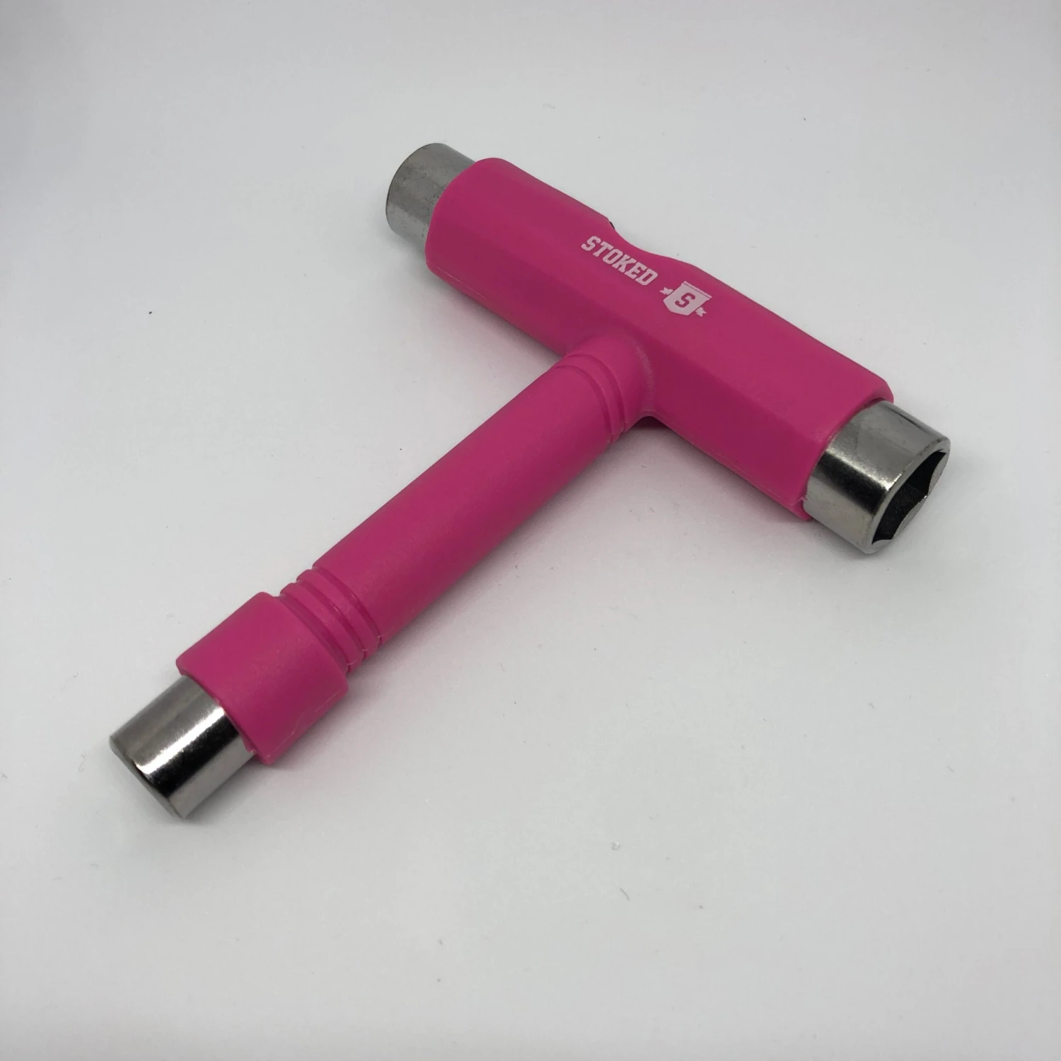 De Stoked Classic Skate Tool Pink werd ontwikkeld door het Europese Stoked Board Co. in samenspraak met de Stoked pro skaters. Deze zeer handige all-in one skatetool dient om je skateboardvijsjes , trucks of bouten mee aan te draaien. Als je veel skate weet je dat het altijd chill is om een goeie tool bij de hand te hebben.