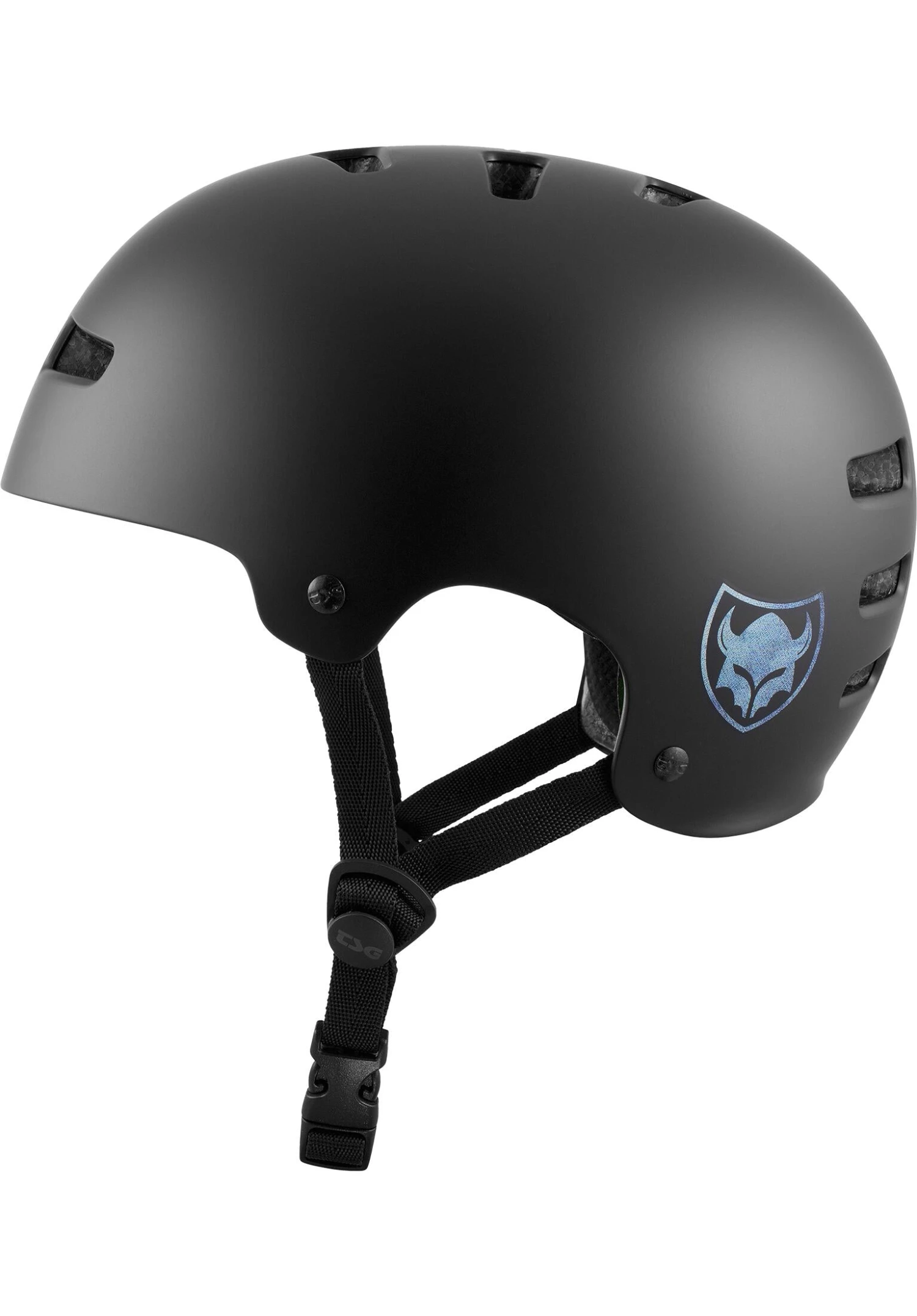 De TSG Evolution Graphic Design Ride-or-Dye Helm beschermt je hoofd bij zware crashes en garandeert een unieke kwaliteit. Een heel stevige ASB-buitenkant werd perfect vormgegeven om op ieders hoofd te passen. Het slank profiel blijft goed zitten, zonder te verschuiven of te schudden. De ventilatiegaten zorgen voor afkoeling tijdens het skaten. De comfortabele kussens kan je aanpassen naar gelang je maat, je kan ze er ook uitnemen en wassen.