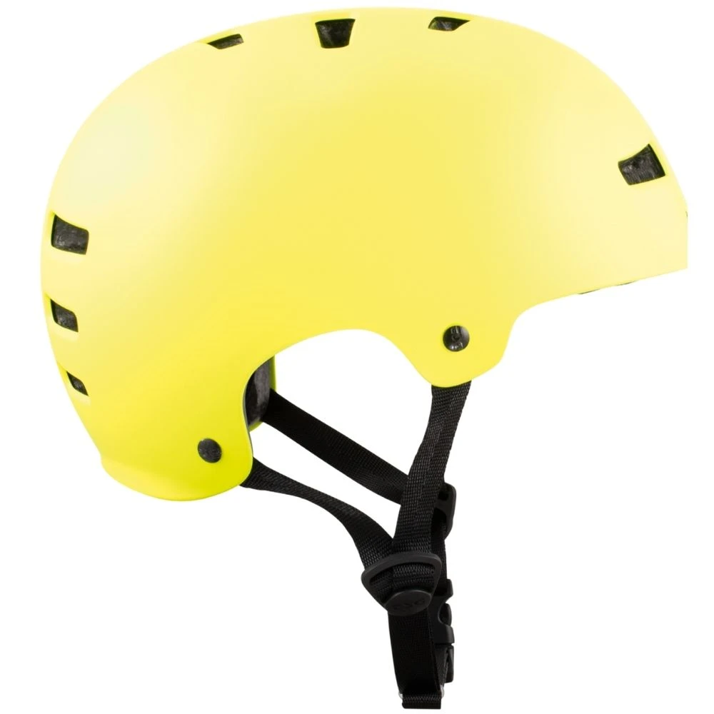 De TSG Evolution Solid Color Satin Acid Yellow helm beschermt je hoofd bij zware crashes en garandeert een optimale kwaliteit. Een heel stevige ASB-buitenkant werd perfect vormgegeven om op ieders hoofd te passen. Het slank profiel blijft goed zitten, zonder te verschuiven of te schudden. De ventilatiegaten zorgen voor afkoeling tijdens het skaten. De comfortabele kussens kan je aanpassen naar gelang je maat, je kan ze er ook uitnemen en wassen.Â