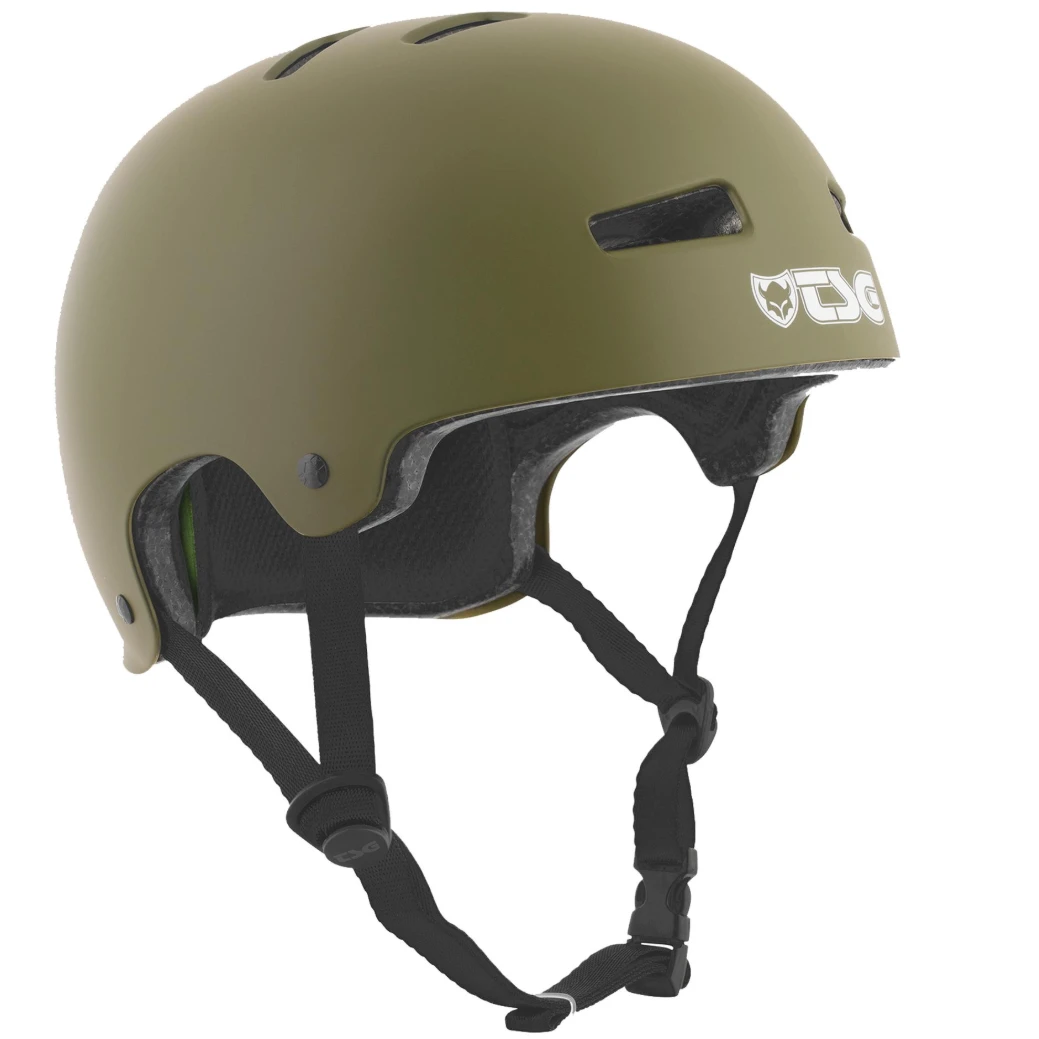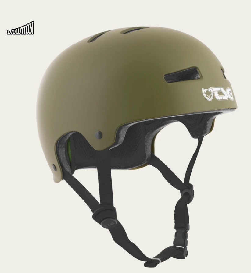 De TSG Evolution Solid Color Satin Olive helm beschermt je hoofd bij zware crashes en garandeert een unieke kwaliteit. Een heel stevige ASB-buitenkant werd perfect vormgegeven om op ieders hoofd te passen. Het slank profiel blijft goed zitten, zonder te verschuiven of te schudden. De ventilatiegaten zorgen voor afkoeling tijdens het skaten. De comfortabele kussens kan je aanpassen naar gelang je maat, je kan ze er ook uitnemen en wassen.Â