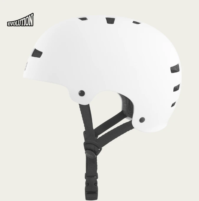 De TSG Evolution Solid Color Satin white helm beschermt je hoofd bij zware crashes en garandeert een unieke kwaliteit. Een heel stevige ASB-buitenkant werd perfect vormgegeven om op ieders hoofd te passen. Het slank profiel blijft goed zitten, zonder te verschuiven of te schudden. De ventilatiegaten zorgen voor afkoeling tijdens het skaten. De comfortabele kussens kan je aanpassen naar gelang je maat, je kan ze er ook uitnemen en wassen.