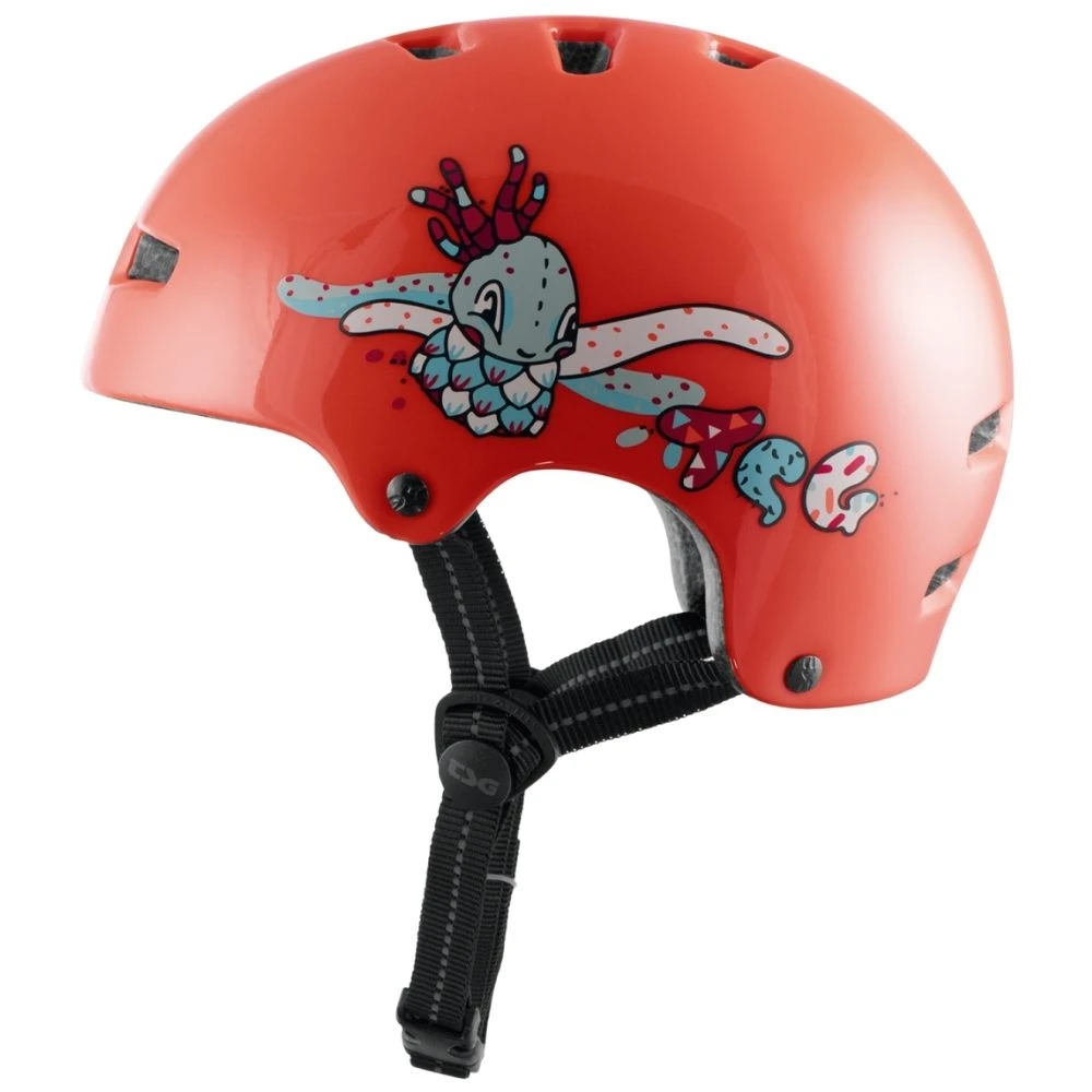 De TSGÂ Kids Nipper Mini Graphic Design Underwater Things Helm is een oranje helm met originele graphic van het kwaliteitsvolle merk TSG. Met deze helm kunnen jongere skaters zich helemaal uitleven terwijl hun hoofd beschermd is. Veilig rijden in stijl.