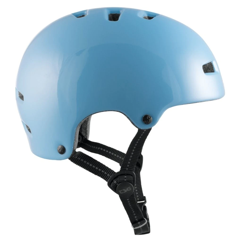 De TSG Kids Nipper Mini Solid Gloss Baby Blue Helm is een opvallende helm van het bekende merk TSG. TSG is een merk van skaters voor skaters en dat zie je terug in de geweldige kwaliteit die zij bieden. Deze helm biedt je de nodige bescherming als je zou vallen bij het skaten.
