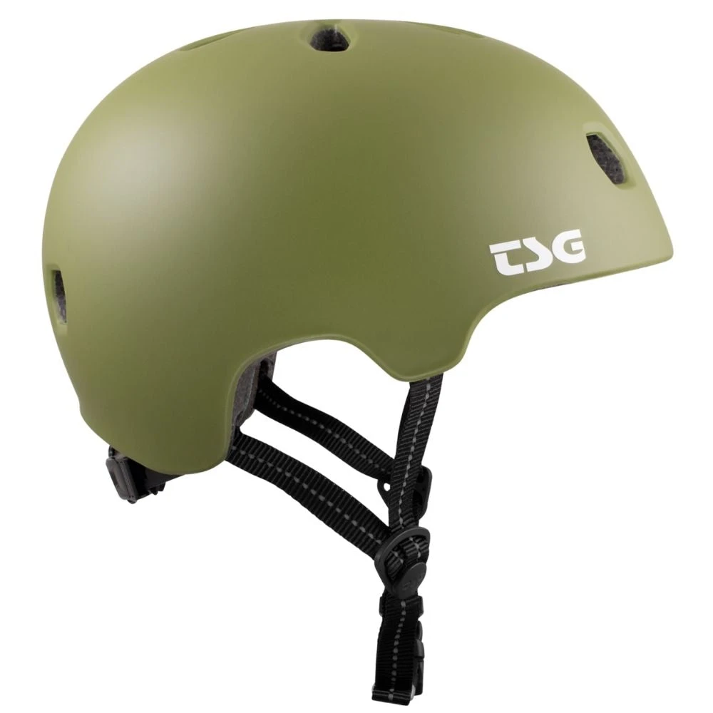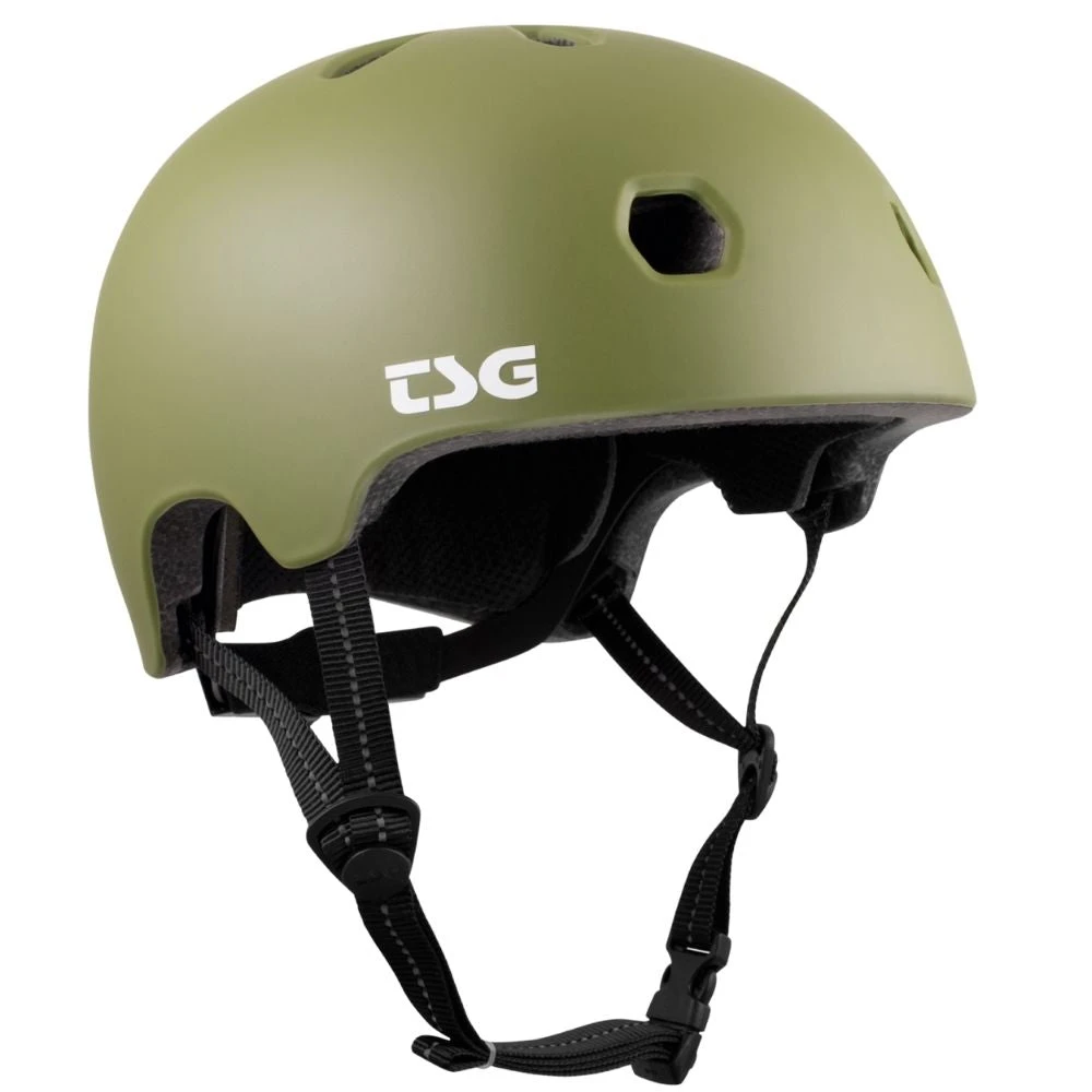 De TSG Meta Solid Color Satin Olive is een combinatie van de uitstekende TSG kwaliteit en een super strak design. Deze helm zit dankzij zijn low fit pasvorm heel erg goed. TSG gebruikt voor deze helm een in-mold-constructie waarbij het beschermde EPS-materiaal direct in de harde schaal van PC is verwerkt. Hij heeft een nauwsluitende pasvorm waardoor hij goed blijft zitten, zonder te verschuiven of te wiebelen. De ventilatiegaten zorgen voor afkoeling tijdens het skaten. De comfortabele kussens kan je aanpassen naar gelang je maat, je kan ze er ook uitnemen en wassen.Â