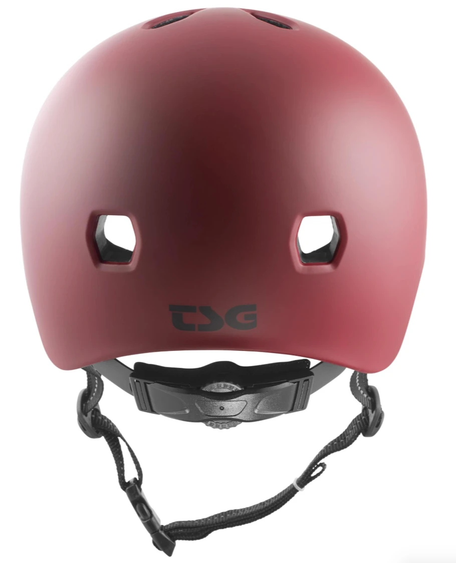 De TSG Meta Solid Color Satin Oxblood Helm is een combinatie van de uitstekende TSG kwaliteit en een super strak design. Deze helm zit dankzij zijn low fit pasvorm heel erg goed. TSG gebruikt voor deze helm een in-mold-constructie waarbij het beschermde EPS-materiaal direct in de harde schaal van PC is verwerkt. Hij heeft een nauwsluitende pasvorm waardoor hij goed blijft zitten, zonder te verschuiven of te wiebelen. De ventilatiegaten zorgen voor afkoeling tijdens het skaten. De comfortabele kussens kan je aanpassen naar gelang je maat, je kan ze er ook uitnemen en wassen.Â