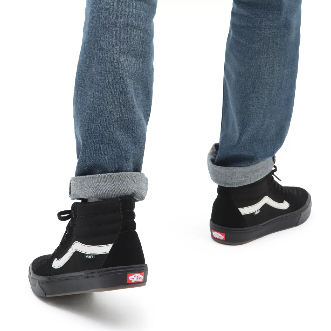 De Vans BMX Sk8-Hi Black/ Black werd ontworpen met BMX’en in het achterhoofd. De duurzaamheid bij deze schoen is hoog dankzij de Duracap™-versteviging, wafflecup™ BMX-buitenzool en Van Doren Factory Pedal Recipe. Breng je skills naar het volgende level met deze awesome schoenen.