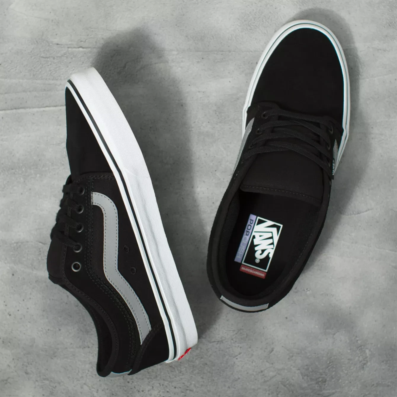 De Vans Chukka Low Sidestripe Black/Grey/White is een Vans schoen die zijn inspiratie haalt bij klassiekers zoals de Authentic en Chukka Boot. De schoen heeft de iconische sidestripe die iedereen kent voor een traditionele Vans look. Voor het skaten is er een verbeterde binnenzool voor superieure demping en impactbescherming, een originele rubberen wafelzool van Vans voor extra grip en ondersteuning en een Pro Vulc Lite-constructie voor lichtgewicht comfort en flexibiliteit.