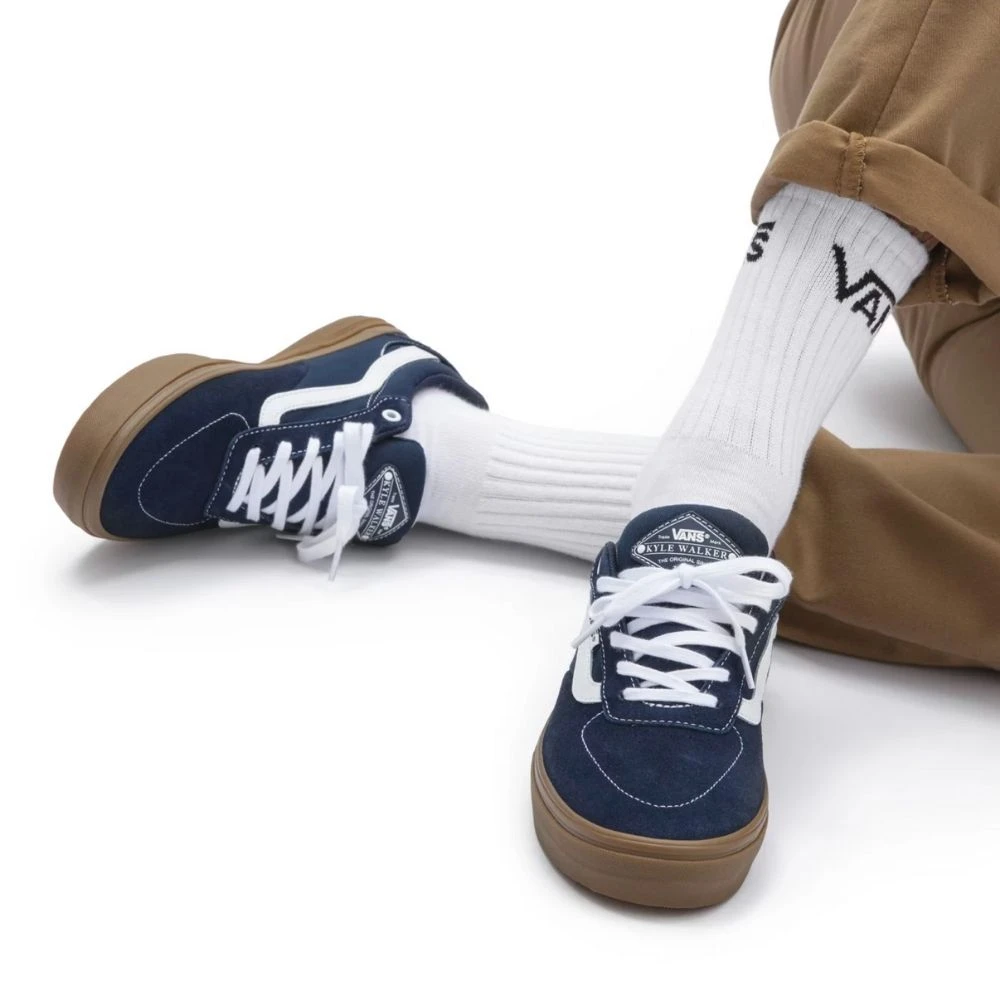 De Vans Kyle Walker Dress Blues/Gum is het eerste pro model van Kyle Walker in een awesome blauwe kleur. Deze is perfect om te skaten dankzij verschillende technologieën. Zo is er de rubberen DURACAP™-versteviging op slijtagegevoelige plekken, deze zorgt voor extra duurzaamheid. Daarnaast helpt de POPCUSH™-binnenzool tegen vermoeide benen en de WAFFLECUP™-constructie biedt de ondersteuning van een cupzool zonder in te leveren op de grip of het boardgevoel.