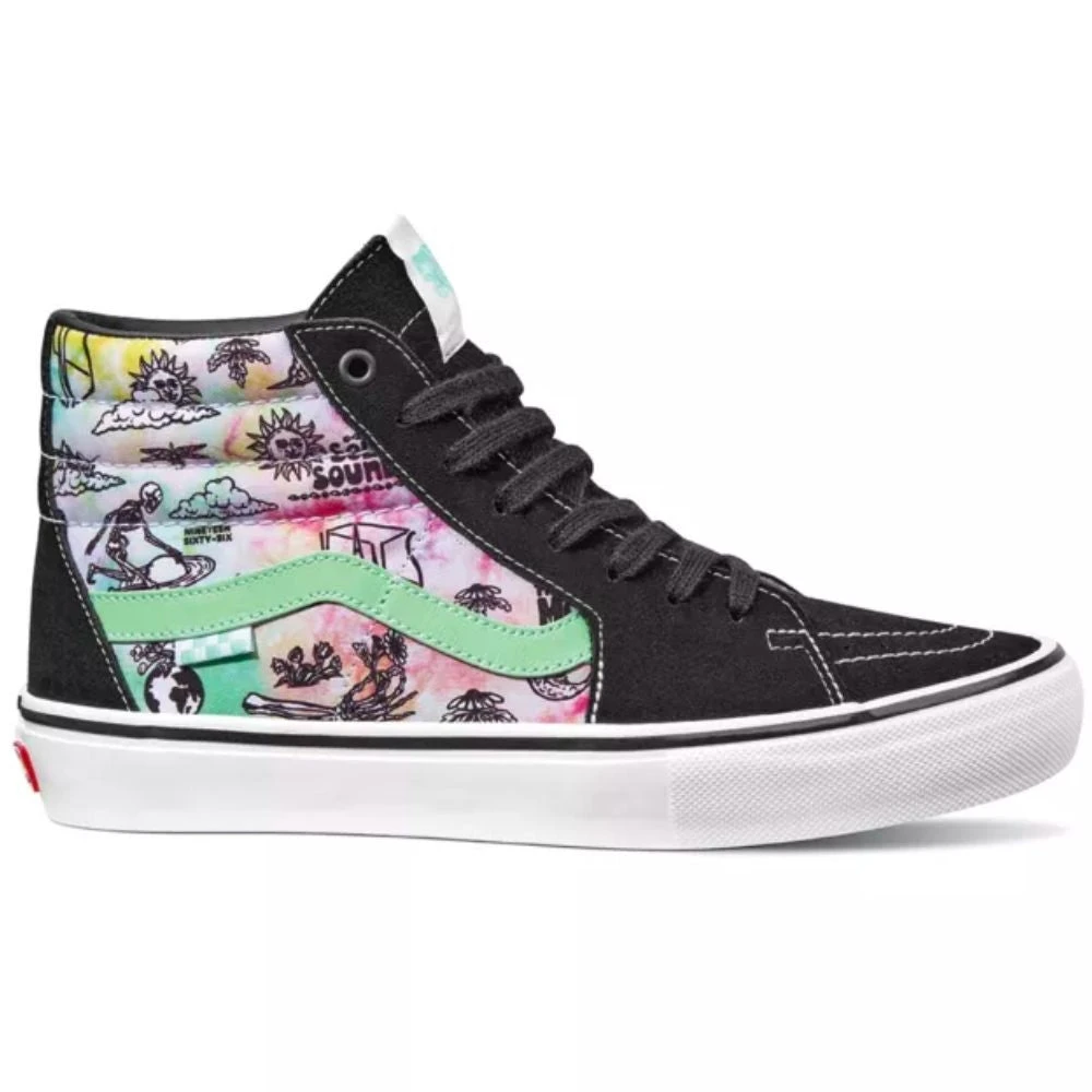 De Vans Shroom Doom Skate Sk8-Hi Black/Green is een nieuwe Sk8-Hi van het geweldige Vans. De vernieuwde foxing tape en het bovenwerk van stevig suède en canvas zorgen hier voor extra duurzaamheid. De iconische look die je gewend bent blijft helemaal hetzelfde, net als de topkwaliteit. Deze schoen heeft ook nog eens een geweldige Shroom Doom psychedelische look.