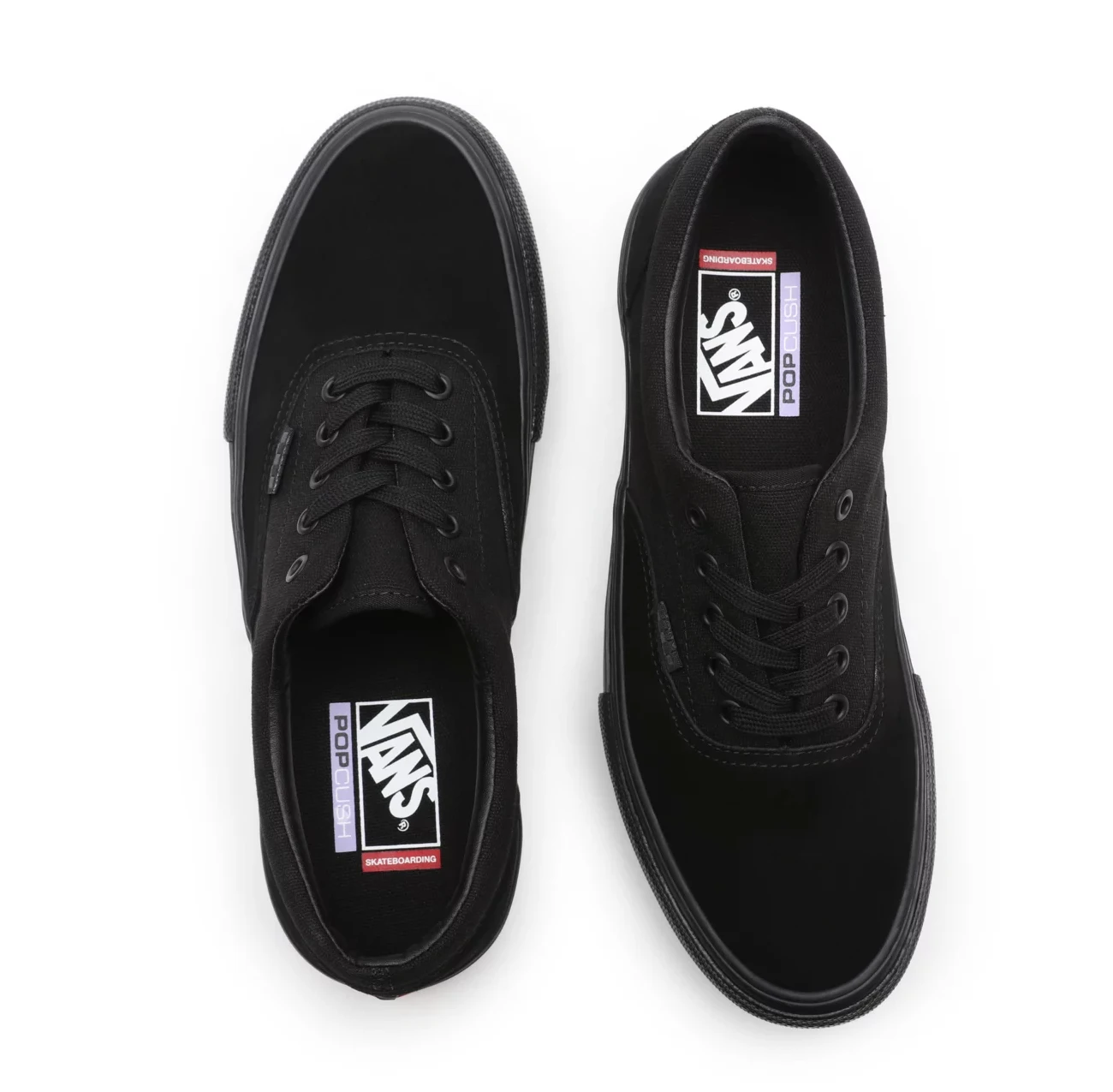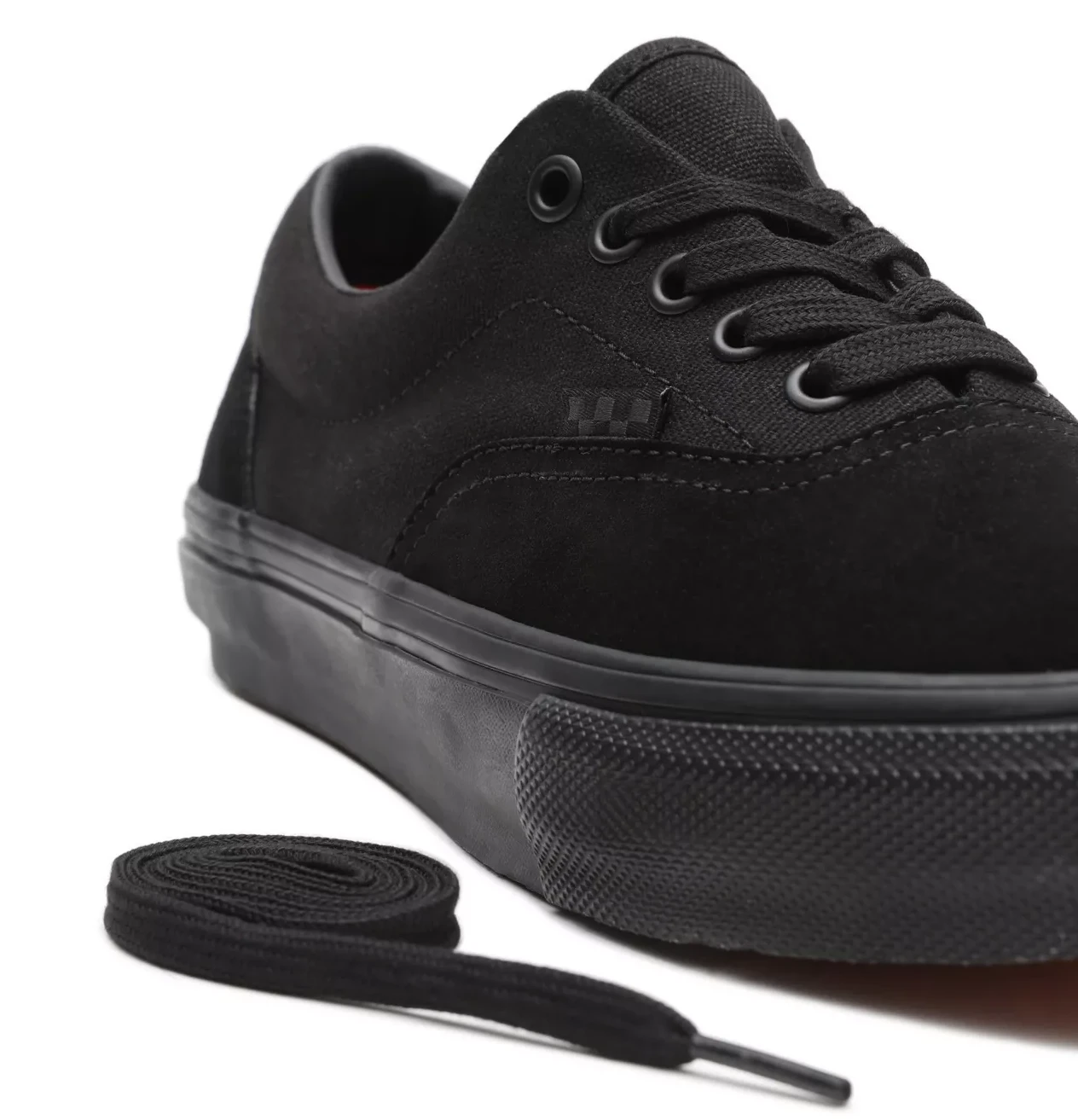 De Vans Skate Era Black/ Black is een skate schoen die ervoor zorgt dat je altijd een goede grip hebt tijdens je skateboard sessies. Het Era model werd opnieuw heruitgevonden voor echte skate fans. Met nieuwe afwerkingen, een geblokte vlag en ‘Skateboarding’ branding die de iconische stijl van dit model opnieuw laten schijnen. Het heeft een gewatteerde tong en voering voor extra comfort. Deze schoen heeft ook een overlap van de zool, DURACAP ™dat strategische gebieden met hoge slijtage versterkt om de levensduur van uw favoriete schoen te verlengen. Dankzij de nieuwe rubbersamenstelling wordt het grip niveau van de schoen verder verbeterd.