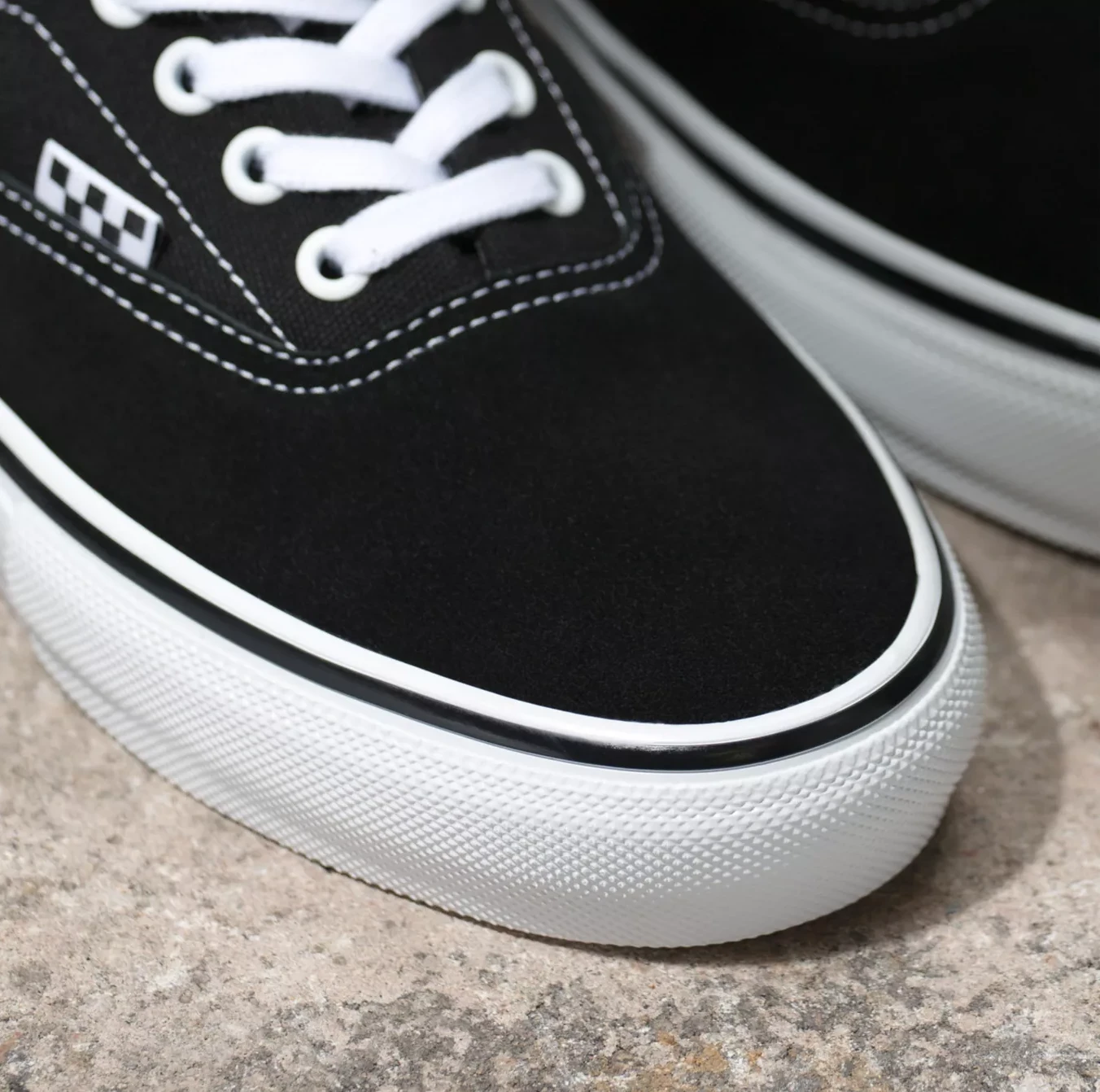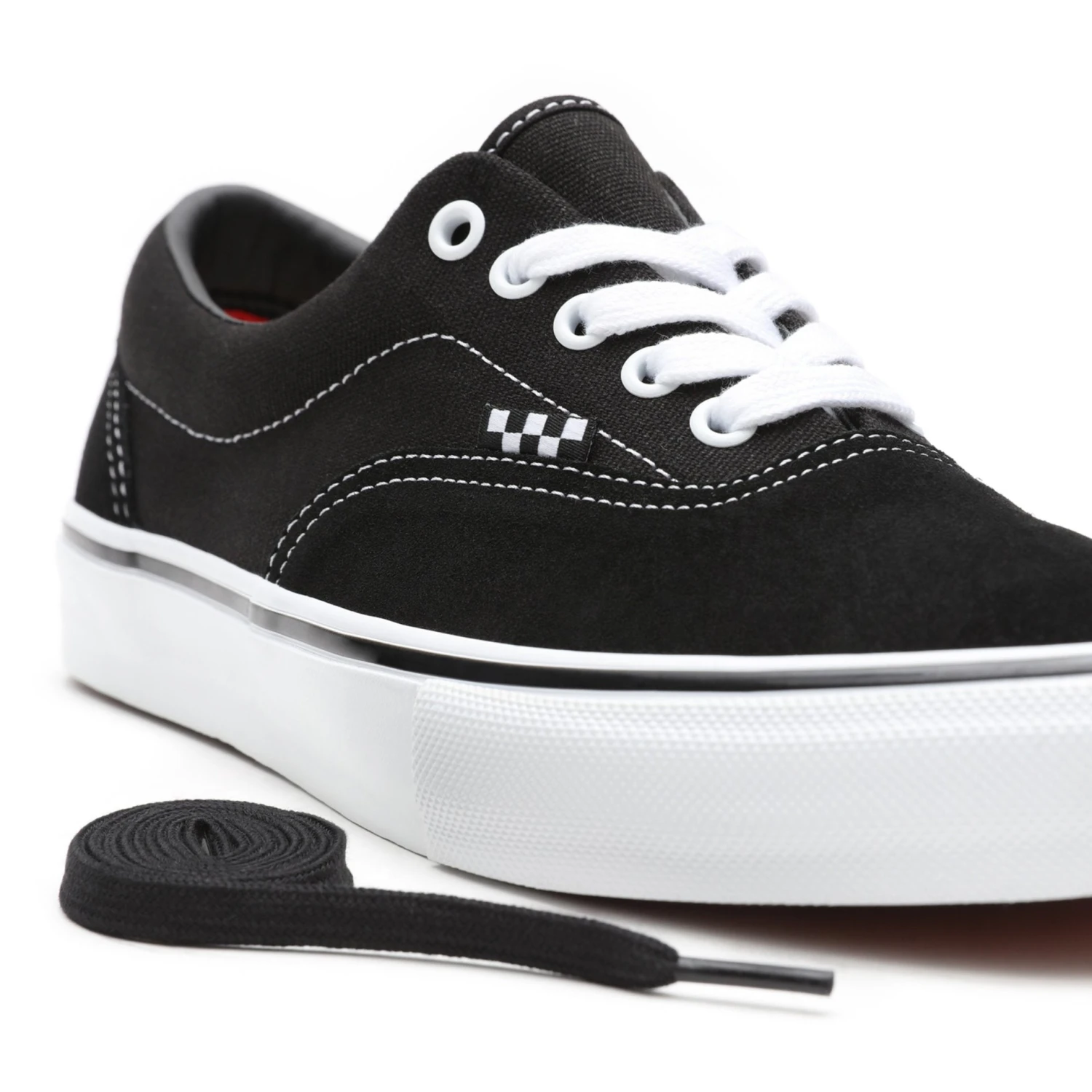 De Vans Skate Era Black/ White is een skate schoen die ervoor zorgt dat je altijd een goede grip hebt tijdens je skateboard sessies. Het Era model werd opnieuw heruitgevonden voor echte skate fans. Met nieuwe afwerkingen, een geblokte vlag en ‘Skateboarding’ branding die de iconische stijl van dit model opnieuw laten schijnen. Het heeft een gewatteerde tong en voering voor extra comfort. Deze schoen heeft ook een overlap van de zool, DURACAP ™dat strategische gebieden met hoge slijtage versterkt om de levensduur van uw favoriete schoen te verlengen. Dankzij de nieuwe rubbersamenstelling wordt het grip niveau van de schoen verder verbeterd.