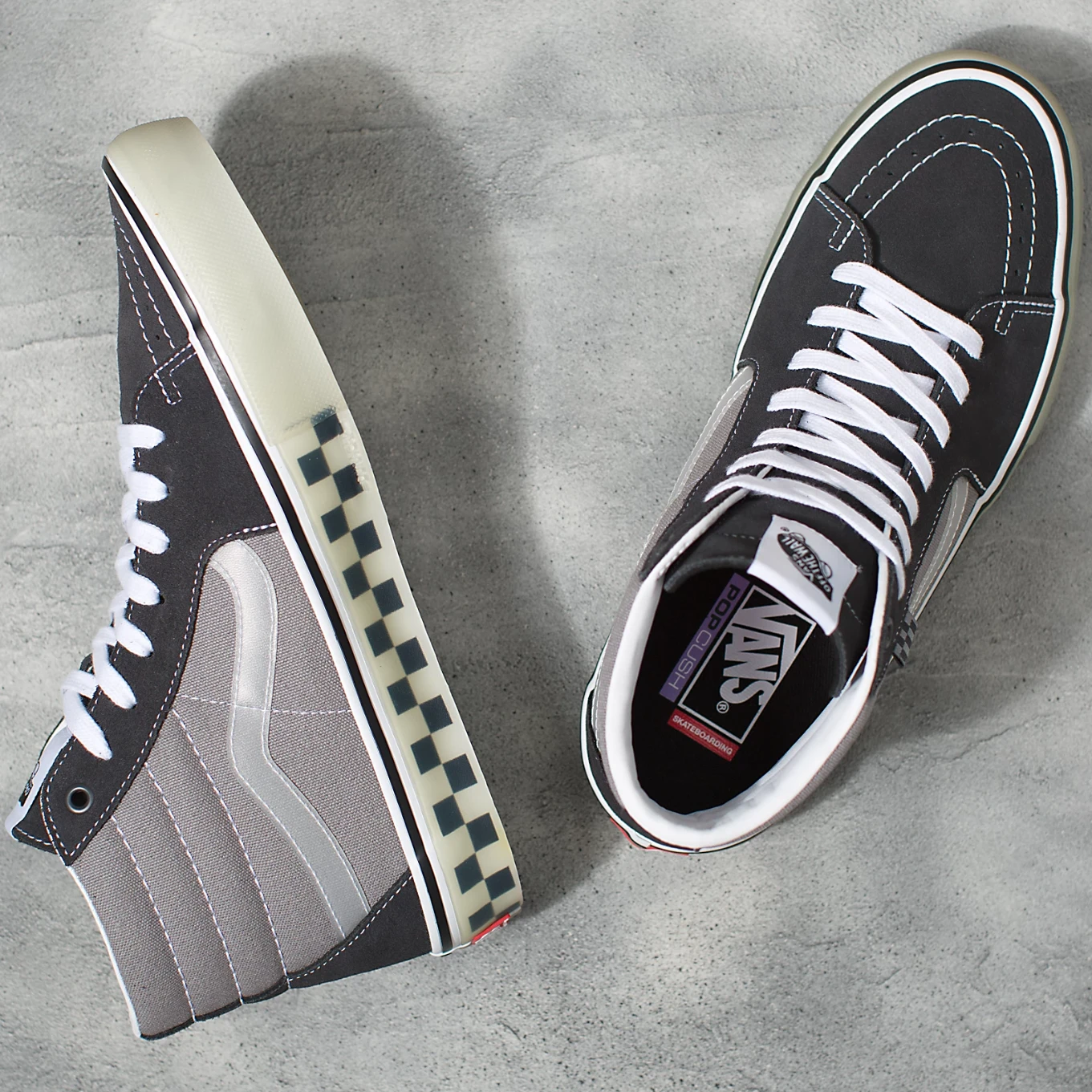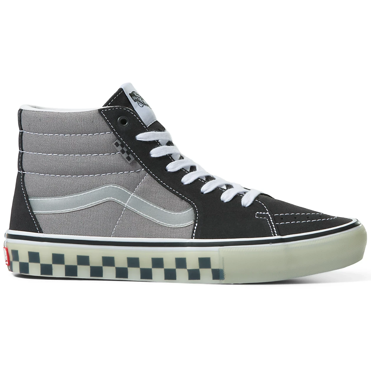 De vernieuwde foxingtape en de doorzichtige zijkanten met checkerboardprint van de Translucent Skate Sk8-Hi, samen met het bovenwerk van stevig suède en canvas van 170 g en 283 g, zorgen voor de iconische look waar je naar op zoek bent en bieden tegelijkertijd alle prestatievoordelen die skateboarders nodig hebben. En kijk zeker uit naar de nieuwe checkerboardvlag aan de zijkant voor het beste in stijl en moderne skateboardprestaties.