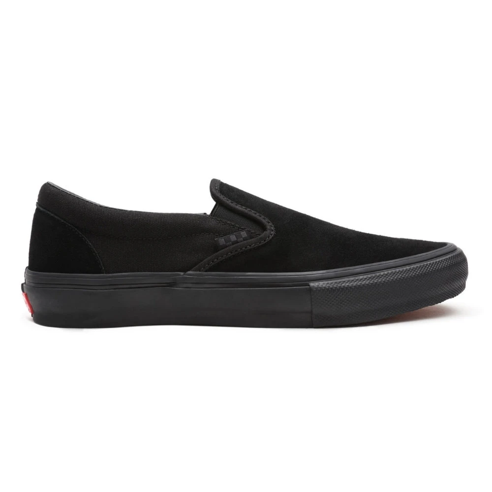 De Vans Skate Slip-On Black/Black is een skate schoen die ervoor zorgt dat je altijd een goede grip hebt tijdens je skateboard sessies. Het Slip-On model werd opnieuw heruitgevonden voor echte skate fans. Met nieuwe afwerkingen, een geblokte vlag en ‘Skateboarding’ branding die de iconische stijl van dit model opnieuw laten schijnen. Het heeft een gewatteerde tong en voering voor extra comfort. Deze schoen heeft ook een overlap van de zool, DURACAP ™dat strategische gebieden met hoge slijtage versterkt om de levensduur van uw favoriete schoen te verlengen. Dankzij de nieuwe rubbersamenstelling wordt het grip niveau van de schoen verder verbeterd.
