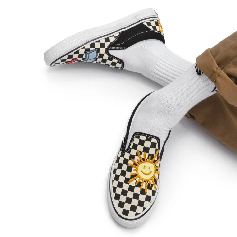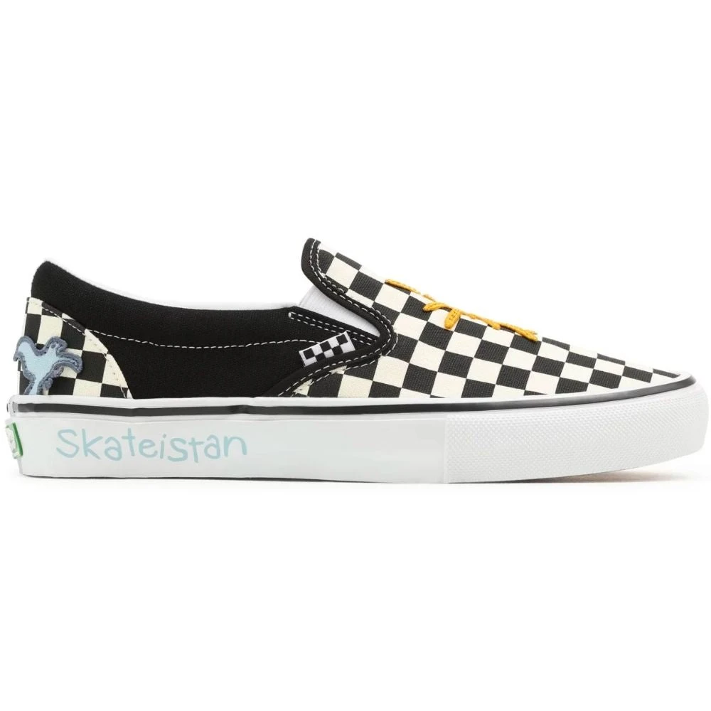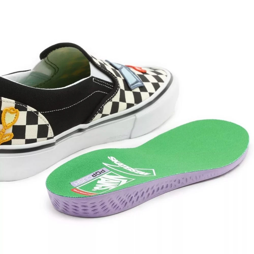 De Vans Skate Slip-On Skateistan Checkerboard is de bekende Slip-On van Vans in een nieuw jasje. Deze schoen is een samenwerking met het geweldige Skateistan, een organisatie die kinderen wil inspireren met skateboarden en onderwijs. De Vans x Skateistan Slip-On zit vol Skateistan details en heeft de verbeterde Classics-constructie van Vans. Dankzij de vernieuwde foxing tape en het bovenwerk van zijde en canvas krijg je een duurzame schoen met de iconische look waar we allemaal zo van houden.