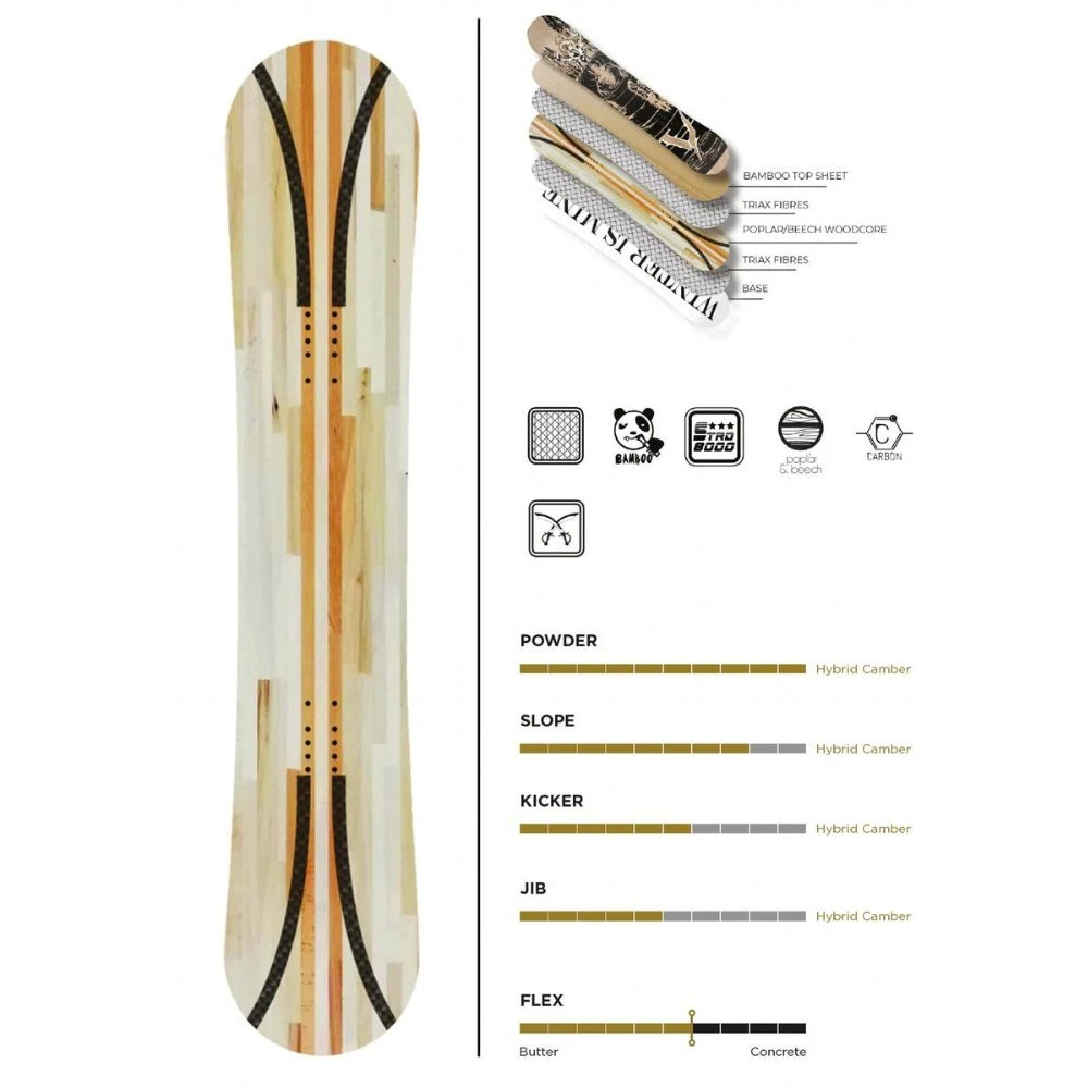 Het Verdad Winter Is Mine 164W 2023 Snowboard is de vijfde generatie van dit baanbrekende bord. Een directioneel freeride board dat er prachtig uitziet met een bamboe bovenblad, terwijl binnenin de gloednieuwe Dual Carbon Sabre Blade structuur en de gelamineerde houtkern omwikkeld met Triax vezels zorgen voor topkwaliteit. Perfect voor grote lijnen en mind-blowing snelheden