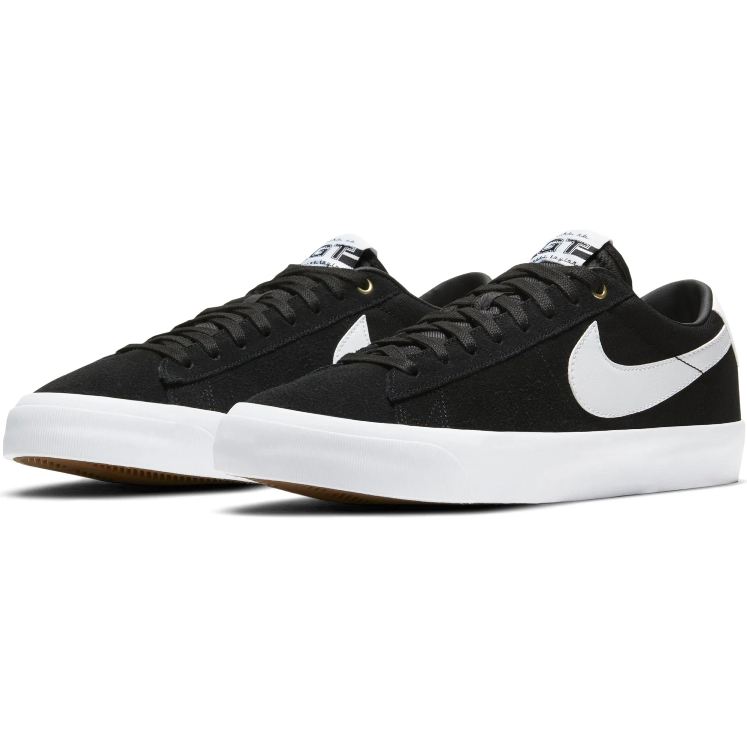 De Nike SB Zoom Blazer Low Pro GT Black/White/Black combineert een geborgde pasvorm met lichtgewicht, responsieve Zoom Air-demping. Het onopvallende ontwerp is geïnspireerd op heritage shoes uit de jaren 70 en biedt flexibiliteit en tractie voor een geweldig boardfeel.